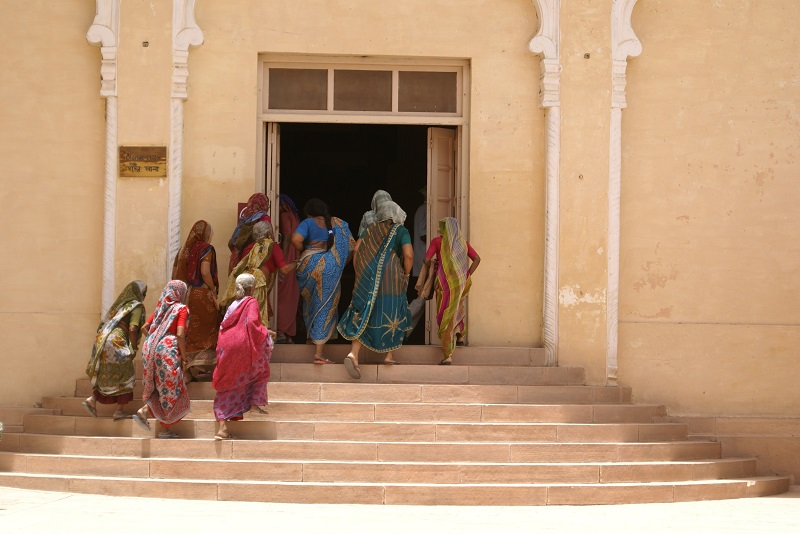 ‘Nous nous trouvons présentement au fort de Jodhpur, avec une vue incroyable sur la ville et où les Indiens et Indiennes et les enfants semblent plus intéressés à me fixer qu’à regarder les attractions touristiques. En fait, je suis devenue l’attraction touristique. J’ignore si c’est parce que je suis blanche (ou plutôt rouge en raison du soleil), grande, ou parce que je porte des pantalons de style Aladin acheté ici et qui, je crois, sont normalement portés par les hommes mais chose certaine, je ne passe pas inaperçue!