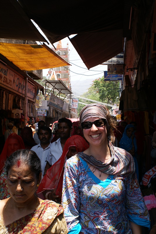 ‘Les aventures animalières se poursuivent. D’abord, je suis entrée en collision avec le chargement d’un âne. Je devais passer à travers un troupeau d’ânes qui se promenaient dans la rue et j’avais bien calculé mes distances entre les têtes des animaux, sans penser qu’il y avait moins d’espace à la hauteur de leur postérieur en raison de leur chargement sur leur dos. Résultat, un beau bleu sur la cuisse. A Jodhpur, un cheval a tenté de prendre une bouchée de mon bras, mais j’ai réagi à temps et m’en suis sortie avec un bras plein de bave et de poils! Enfin, à Delhi, j’ai reçu un coup de queue de vache sur le bras, mais comme elles sont sacrées, je me suis dit que ça pouvait porter chance!
