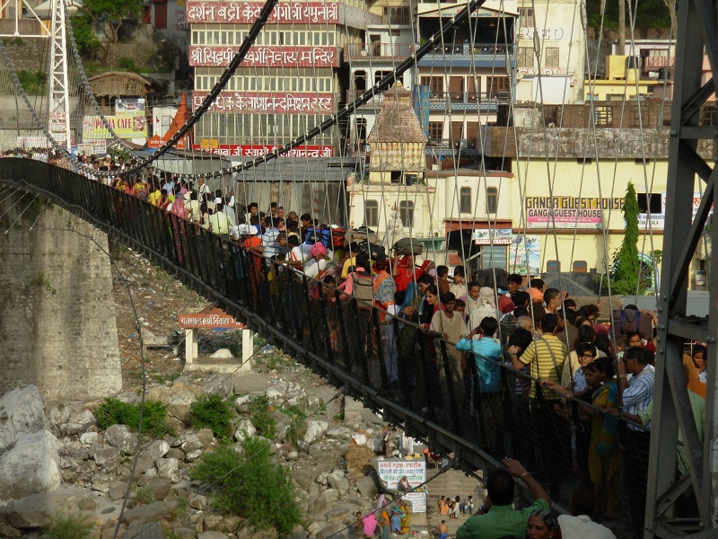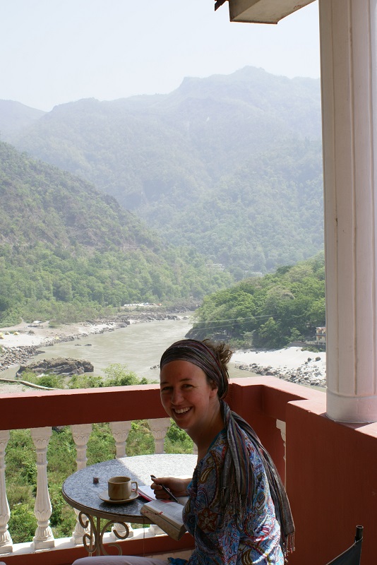 ‘Nous voilà a Rishikesh, ville rendue célèbre par les Beatles, eux qui ont séjourné ici pendant deux mois dans les années 60 en compagnie de leur gourou. C’est aujourd’hui la cité du yoga et des médecines douces. Nous sommes donc ici pour retrouver notre côté zen! Mais aussi parce que la ville se trouve aux portes du Gange (le célèbre fleuve indien) et des montagnes de l’Himalaya. La vue de notre balcon est incroyable. C’est ici la saison morte côté tourisme occidental, mais la haute saison pour ce qui est du tourisme indien.’
