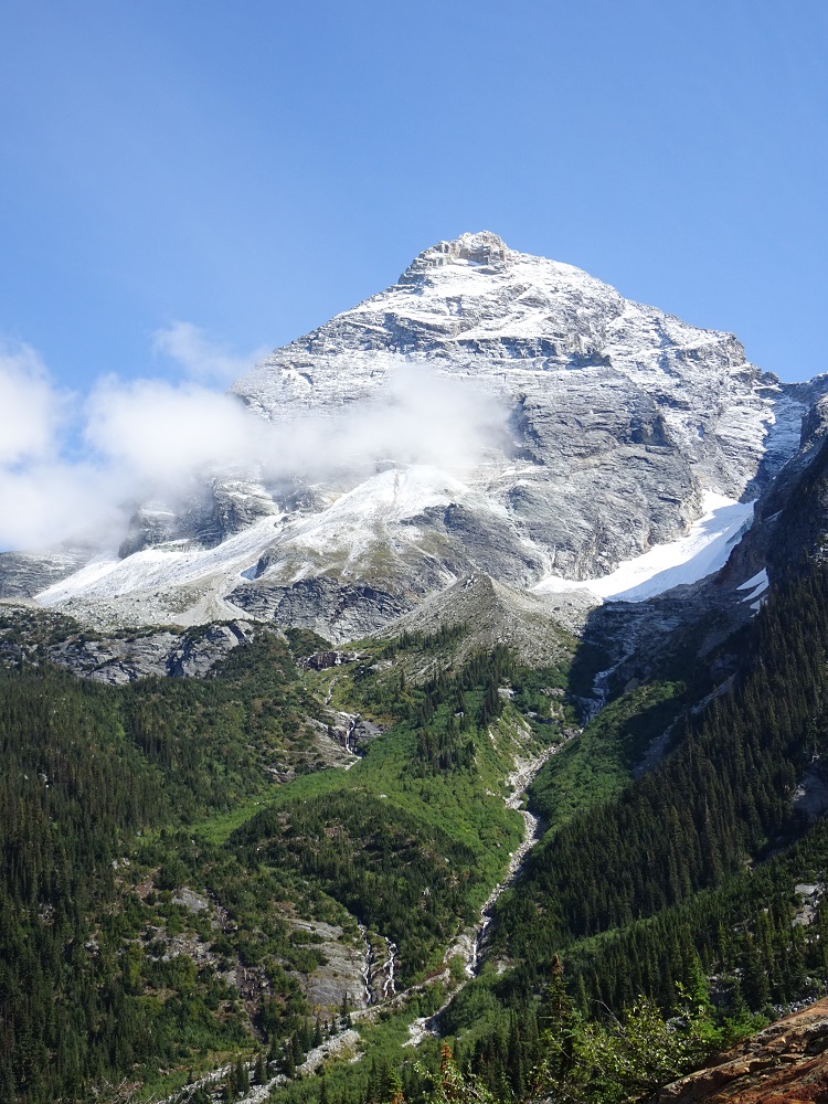 Samedi : Comme nous avons vu le lac Emerald la veille, nous optons pour aller explorer le Parc national des Glaciers. Une randonnée de 8km classée ‘modéré’ de par son élévation totale de 300 mètres nous fait de l’œil. Le sentier s’appelle le ‘Great Glacier’, on se dit que ce sera tout à fait approprié pour découvrir ce qui a donné son nom à ce parc.