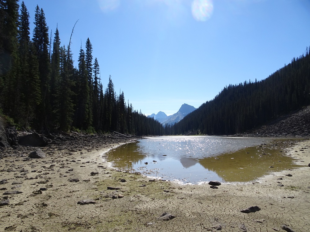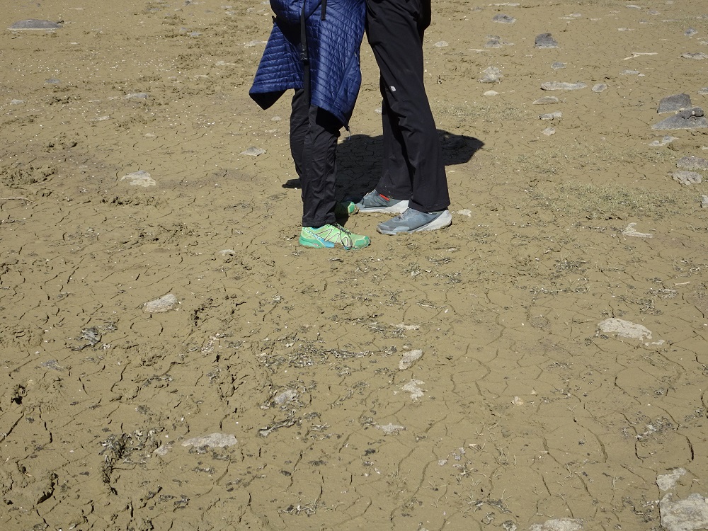 Sur le chemin du retour, une petite pancarte avec une flèche attire notre attention. Duchesnay Lake se trouve dans cette direction apparemment. Et quelques dizaines de mètres plus loin, on se retrouve sur un lac semi-asséché, dans un paysage semi-désertique et magnifique. C’est là que fiston nous a pris en photo… et qu’il ne nous a pas écouté quand on lui a dit de ne pas prendre juste nos pieds!
