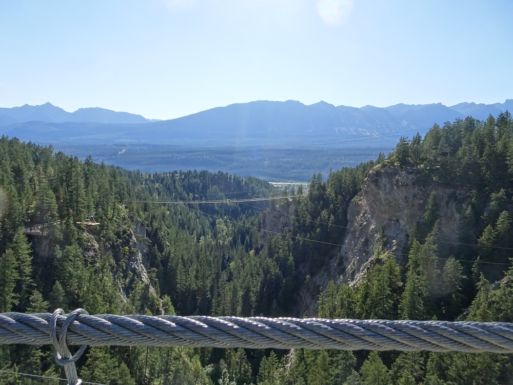 Après 12 kilomètres de marche, on aurait crû que nos enfants s’endormiraient en rentrant dans la voiture. Mais non, ils en redemandent! On décide donc de les emmener au Golden Sky Bridge, là où se trouve le plus haut pont suspendu au Canada. En fait il y en a deux, et donc une fois le premier passé (ouf!), on n’a pas le choix de prendre le deuxième pour revenir à la voiture. Toute une gamme d’activités se trouvent également sur le site, allant d’un parc pour enfants au lancer de la hache, tyrolienne, etc, et l’endroit est encore en développement donc d’autres s’ajouteront dans les années à venir. On décide de payer le prix de base qui inclut seulement l’accès aux ponts et au parc pour enfants (et c’est déjà assez dispendieux). J’avoue ne pas avoir regardé en bas lors de mes traversées, mais tout le reste de la famille semble y avoir pris plaisir.