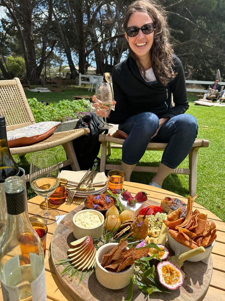 -Adelaide, c’est dans l’état de l’Australie du Sud. Et l’Australie du Sud, c’est synonyme de vignobles. J’ai eu l’immense bonheur de diner au vignoble Down the Rabbit Hole. La pizza était excellente. Le vin était fabuleux. Le décor était parfait. Mes amis ont commandé le plateau de fromages. Je voulais qu’ils profitent pleinement de l’expérience, nous n’avons donc pas pris la version sans gluten, mais il y en a une de disponible. C’était le plus beau plateau de fromages que j’ai vu de ma vie, et heureusement, j’ai pu manger une partie du fromage et des fruits qui n’avaient pas touché le pain.