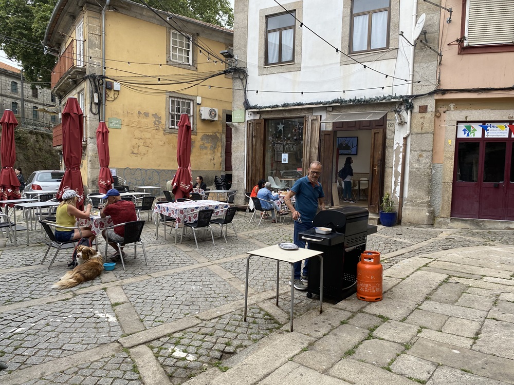 Casa Mara, rua de Miragaia : Ce resto se trouve juste à côté du World Of Discoveries, un musée super intéressant et interactif relatant l’histoire des grands explorateurs portugais. Il se trouve à 500 mètres du centre historique, et donc juste assez à l’écart pour avoir l’impression d’être sortis de la foule. Une belle terrasse, une famille sympathique, un bbq comme chez nous en pleine terrasse pour y faire cuire des plats typiques. Un menu limité : 7-8 assiettes disponibles à 8 ou 10 euros écrits sur une ardoise, et expliqués dans un mélange de portugais, anglais, français et espagnol et de mimes! Devant mes questions concernant le poisson (j’étais inquiète qu’il serait pané), le monsieur est carrément allé chercher l’assiette de poissons crus dans la cuisine, pour ensuite me mimer qu’il le mettrait sur le bbq directement. Il est arrivé cuit à point, bien salé, avec pommes de terre et tomates, et avec un autre mime m’expliquant que je pouvais ajouter une coulée d’huile d’olive pour rendre le tout encore plus délicieux! On a aussi réussi à mimer un ‘demi-litre de vin blanc’! Mon conjoint a adoré son poisson pané, le meilleur du voyage selon ses dires.