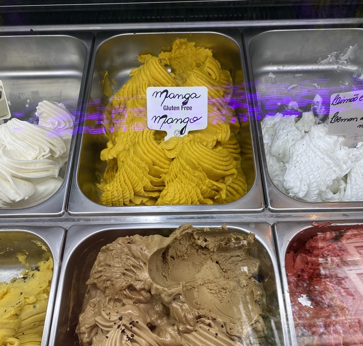 Matriarcado, rua de Cedofeita : Le voyage n’aurait pas été complet sans une dernière gelato. Parmi leur dizaine de saveurs, deux ou trois affichaient la mention sans gluten, dont celle à la mangue, ma préférée. Je n’ai pas regardé en détails leur menu mais comme ils s’affichent comme un restaurant de ‘brunch, drinks & gelato’, possiblement d’autres items sont identifiés sans gluten.