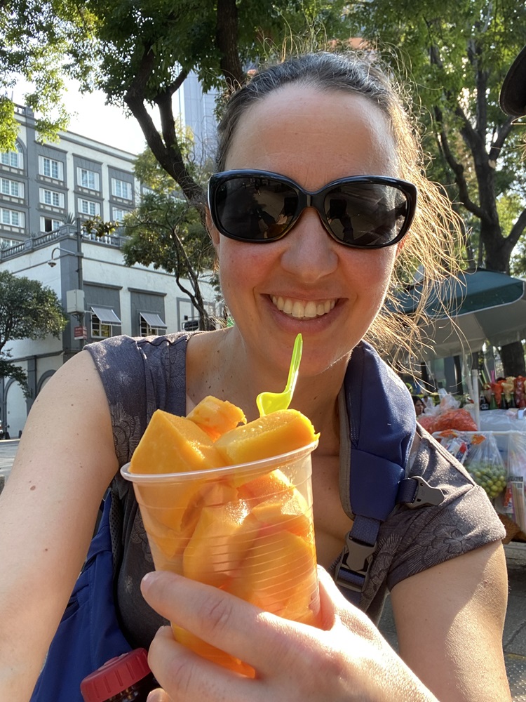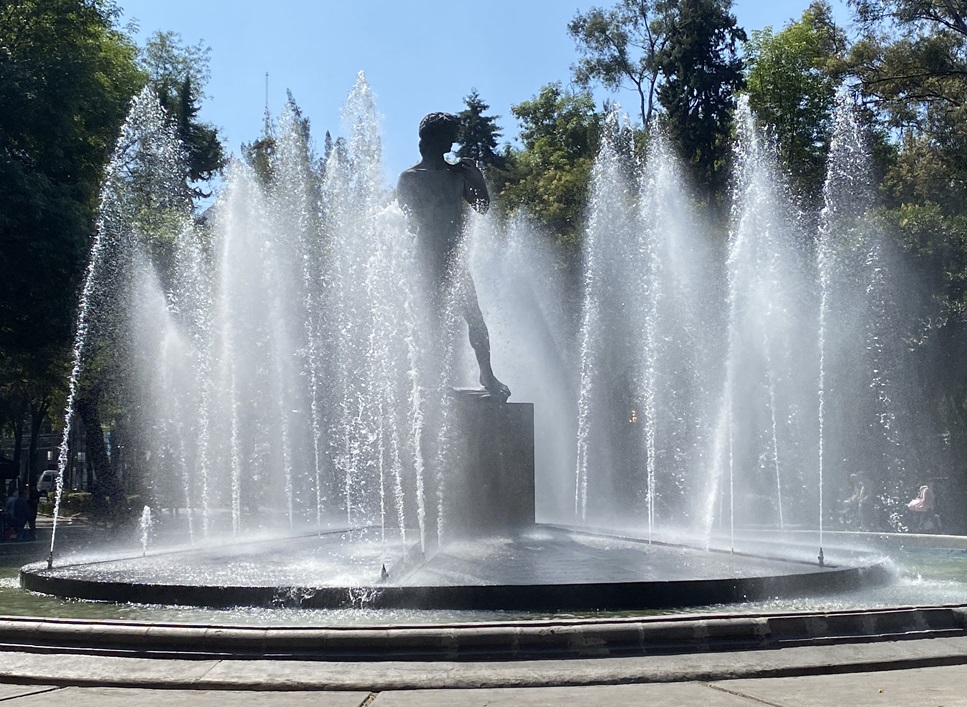 Une fois rassasiées, il était temps pour nous d’aller à la découverte du fameux Bosque Chapultepec. Il s’agit du plus grand parc urbain d’Amérique latine, dans lequel on compte de nombreux musées, dont le plus recommandé est le Museo Nacional de Antropologia, un château, des sentiers, un zoo, etc. Nous savions que les musées étaient fermés en ce lundi, mais nous n’avions pas compris que le parc lui-même serait clôturé à notre arrivée! Nous étions étions évidemment déçues en arrivant sur place, après avoir pris le métro, puis une navette en raison de réparations dans le métro, pour finalement arriver devant des portes closes. Mais comme la ville a plusieurs choses à offrir, nous sommes rapidement passées au plan B. L’hotel se trouvait à 5km, et nous savions qu’en suivant principalement l’avenue de la Reforma, un des artères principaux de la ville, on pourrait voir de nombreuses statues telle que l’Ange de la révolution, le Palacio de Bellas Artes, et faire un petit détour vers le Mercado de Artesanias. Nous avons eu en complément la surprise de trouver de la gelato, et un peu plus loin des mangues parfaitement mûres et coupées, puis un parc animé avec des amuseurs publics et de la bouffe de rue, etc etc.