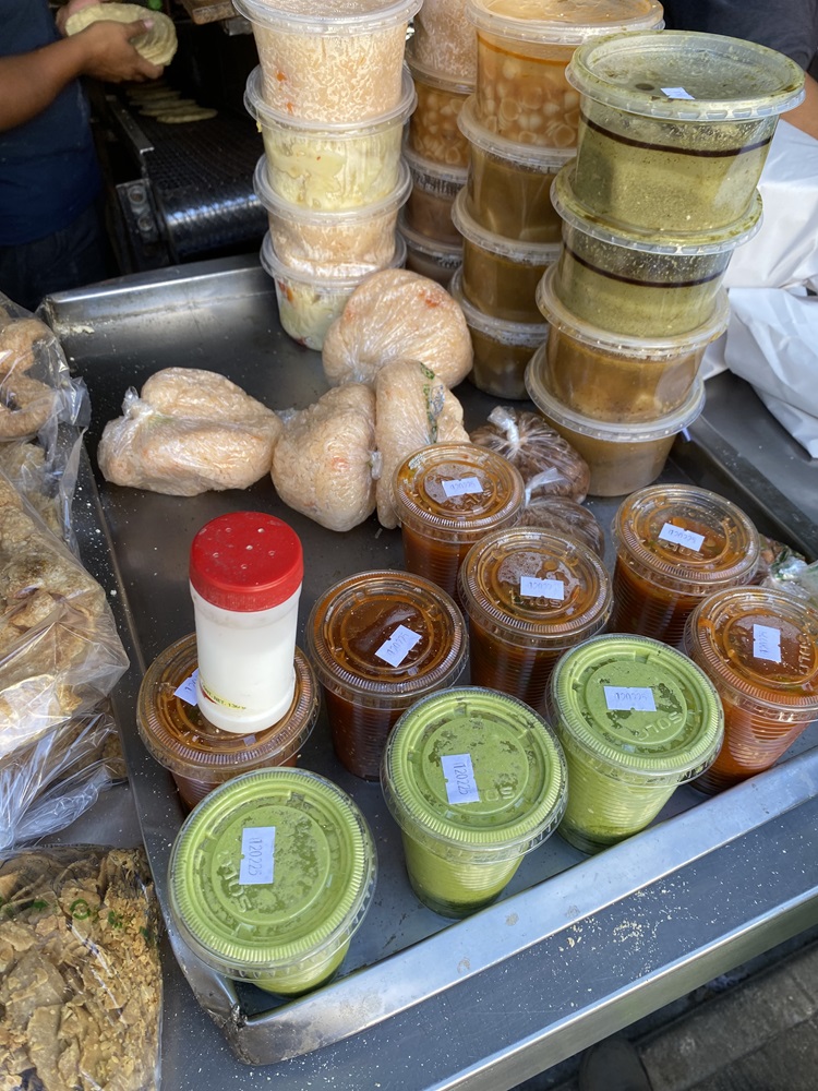 C’est d’ailleurs notre guide qui nous a recommandé la taqueria Arandas, et nous a donné le courage ‘d’oser’ la bouffe de rue. Le monsieur du resto a bien reconnu notre air hésitant devant le menu, et nous a pris en charge rapidement! Entre les mimes et notre espagnol de base, nous nous sommes retrouvées avec des mets délicieux, le tout pour un gros 6,80$ can pour deux!